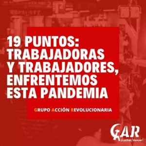 Llamamos a las trabajadoras y trabajadores a impulsar un programa de lucha que ponga en el centro a la clase trabajadora, por eso desde el Grupo de Acción Revolucionaria proponemos 19 puntos (Mira aquí) para que las trabajadoras y trabajadores le hagamos frente a la crisis.