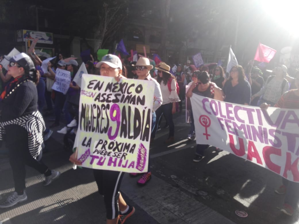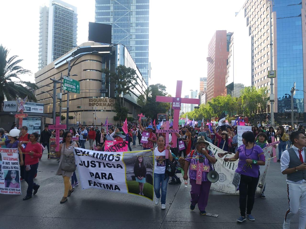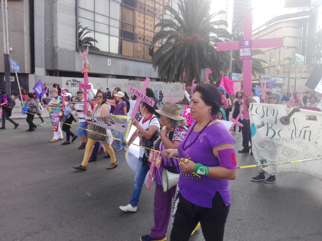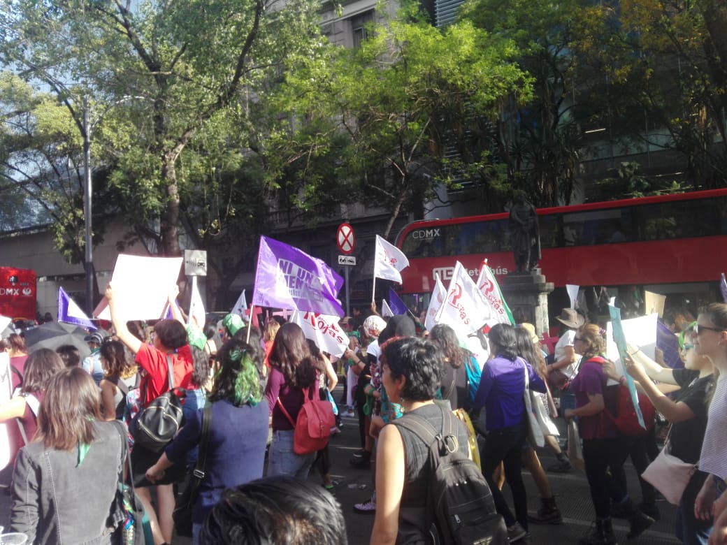 En punto de las 3 de la tarde partió la marcha rumbo al Hemiciclo a Juárez, encabezada por las madres y familiares de víctimas de feminicidio y víctimas desaparición, seguidas de contingentes de mujeres y organizaciones políticas y sociales.