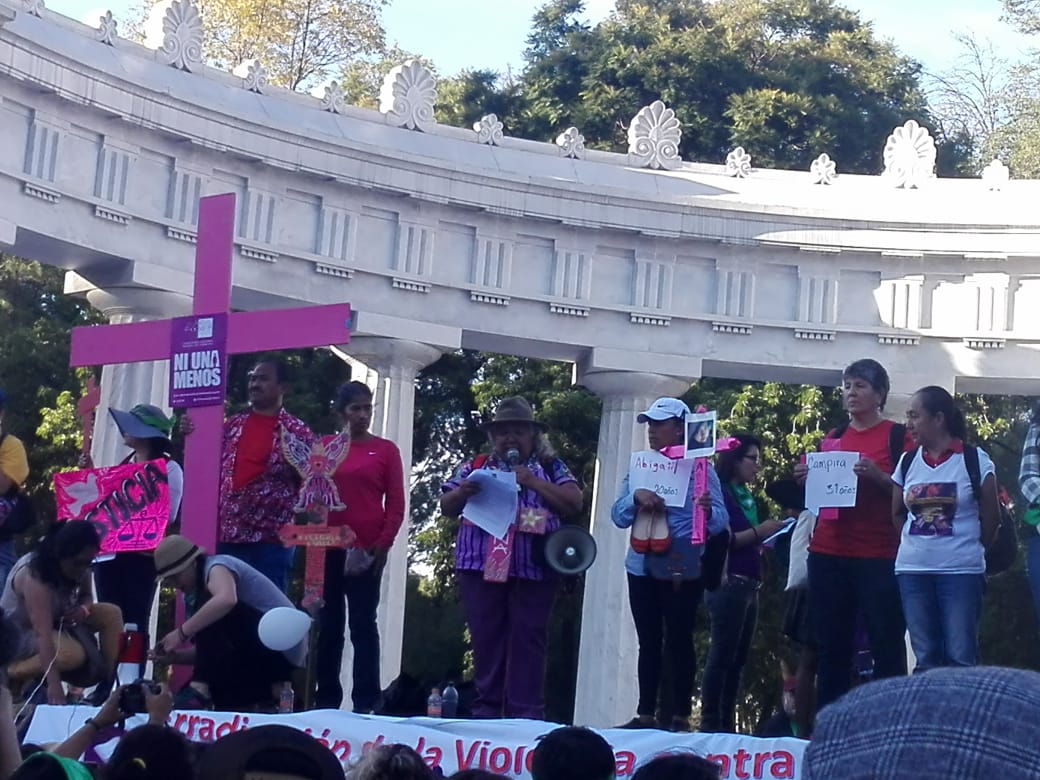 Durante el mitin en el Hemiciclo a Juárez, que fue encabezado por las madres de víctimas de feminicidio como Irinea Buendía madre de Mariana Lima, Aracely Osorio madre de Lesvy Berlín, y María del Carmen madre de Pamela Gallardo que el pasado 5 de noviembre cumplió un año de desaparecida, denunciaron de manera conjunta la impunidad que existe en México para los casos de feminicidio, y la inacción para con los casos de desapariciones.