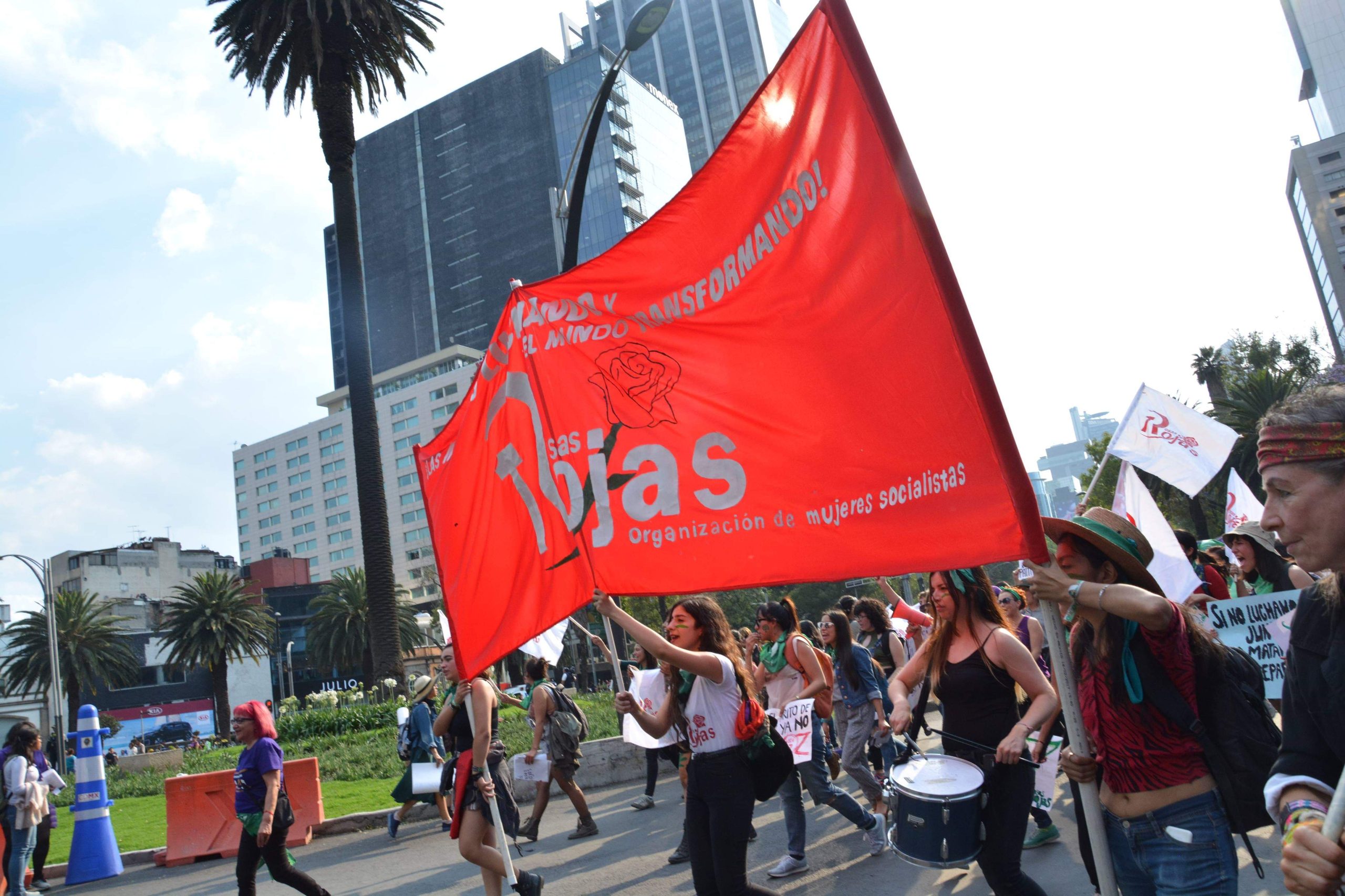 Este 8 de marzo fue una jornada histórica en nuestro país ya que se realizaron acciones en diversos estados y ciudades como Chihuahua, Ciudad Juárez, Monterrey, Guadalajara, Morelia, Hidalgo, Zacatecas, San Luis Potosí, Querétaro, Puebla, Oaxaca. En la Ciudad de México se realizó una importante movilización en la que alrededor de 10 mil mujeres, que pintamos las calles de verde y morado.