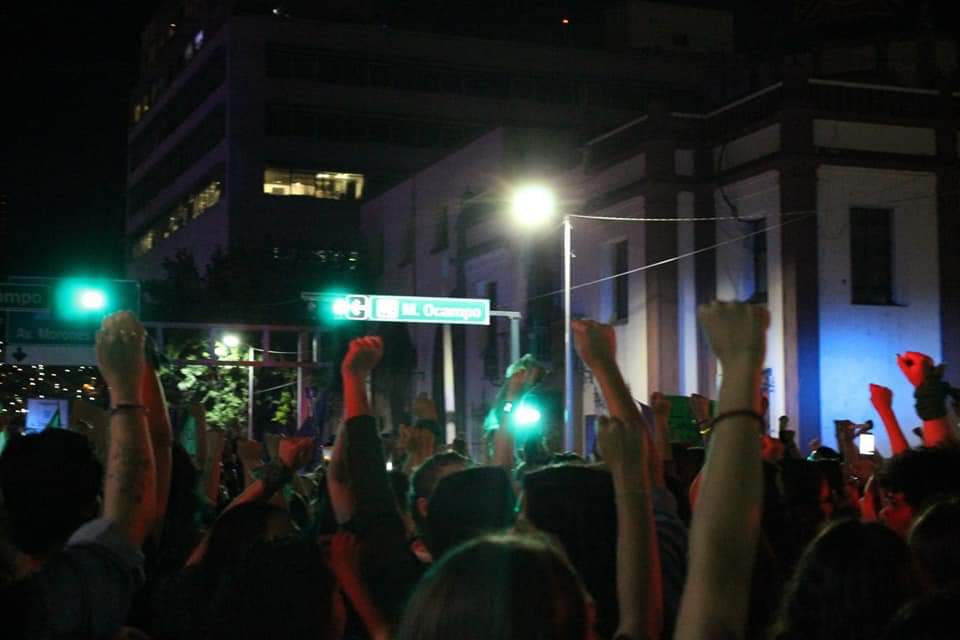 “Para Nuevo León, este 8 de marzo fue sin duda, un día histórico. El viernes 8 de marzo del 2019 en punto de las 6 de la tarde, dio inicio el evento que marcaría la historia, con diferentes actos y números en homenaje a las mujeres muertas por feminicidio y a las mujeres trabajadoras, la plaza del colegio civil se fue llenando de pañuelos verdes en poco tiempo. Para las 7:45 pm la plaza ya estaba llena, mujeres de todas las edades, todas con el pañuelo verde, con pancarta y mantas, todas con un solo objetivo, salir a las calles y exigir sus derechos y en especial uno, que nos han intentado quitar, nuestro derecho a decidir. Si nos ponemos a pensar la reciente reforma al artículo 1ro de la Constitución de Nuevo León, que dice que la vida empieza desde la fecundación, fue más que nada un motor, una chispa que nos encendió y nos impulsó con más fuerza, nos impulso a levantarnos, a no quedaron calladas y hoy más que nunca exigir nuestro derecho a decidir.