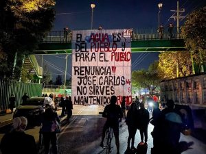 En México estas afirmaciones distan mucho de la realidad, la represión es constante en personas que luchan por defender el territorio y el ambiente, en temas como en el agua, el proletariado mexicano se enfrenta con una legislación heredada desde el gobierno de Gortari que da prioridad a las grandes empresas inmobiliarias sobre los pueblos originarios o las colonias populares. Un caso concreto es el de la torre Mitikah que se preveé cause un saqueo de agua que provoque escasez para las zonas aledañas, a consecuencia de construir una mega plaza comercial y complejo departamental, mismo caso ocurriría en la remodelación del Estadio Azteca frente al mundial del 2026. Otro caso reciente han sido las movilizaciones emprendidas por los sectores populares de San Gregorio Atlapulco en Xochimilco y San Pedro Mártir en Tlalpan, que han denunciado las pretensiones de saqueo de agua por parte de las grandes inmobiliarias.
